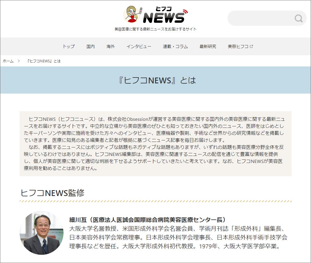 ヒフコNEWSは、株式会社Obsessionが運営する美容医療に関する情報サイトであり、中立的な立場から国内外の美容医療に関する最新情報を提供しています。