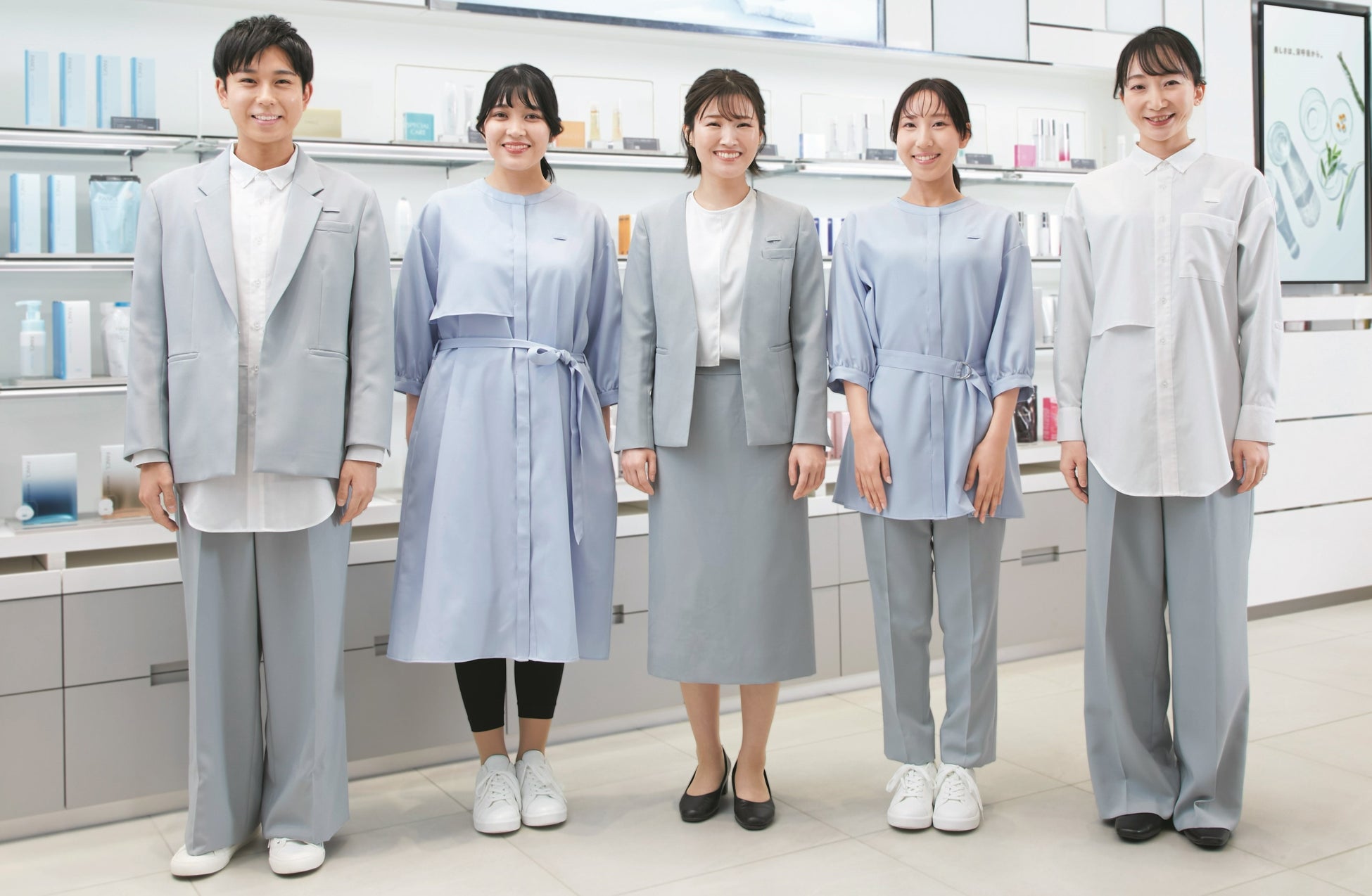 株式会社ファンケルは、5月16日(木)から、全直営店舗のスタッフが着用する制服を、4年ぶりに刷新します。新制服は、全12アイテムの中から一人ひとりが好みのアイテムを選び、自身の私服を組み合わせることで67通りのコーディネートを可能にしました。自身の個性を引き出し、年代や性別を問わないデザインです。