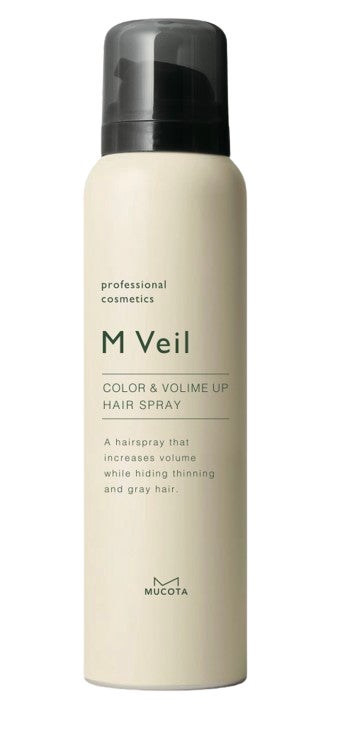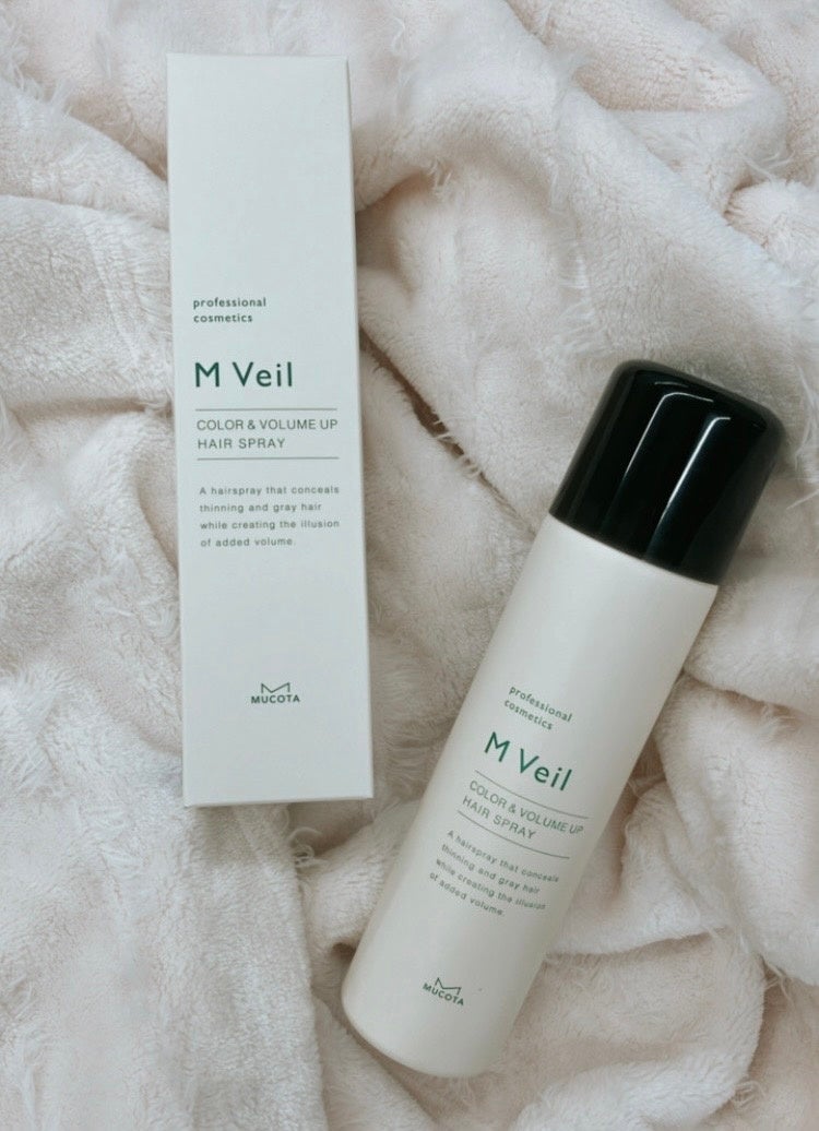 「M Veil」はシャンプーで簡単に洗い流すことができる、薄毛や白髪をカバーするヘアスプレーです。髪の毛に微細粉末タルクと皮膜ポリマーを噴霧することにより、髪の毛1本1本をコーティング。細い毛を自然に太く見せることができ、気になるつむじ周りや、分け目をカバーすることができます。