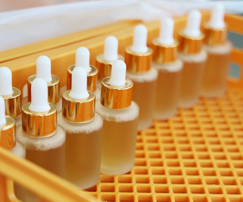 CINCO VARIANDの美容液は、徹底した衛生管理のもとバルク作りからボトルへの充填、ラベル貼りからパウチングまで ひとつひとつ心を込め丁寧に作られています。