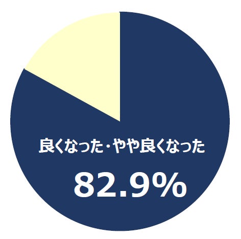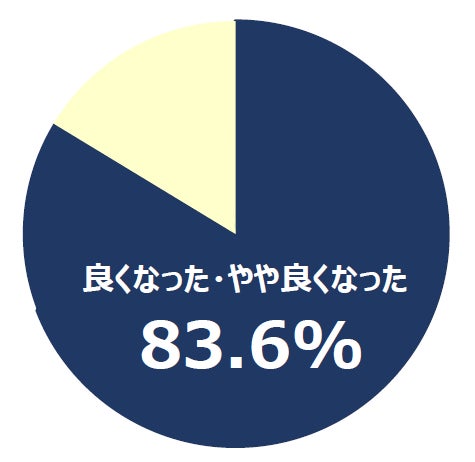 83.6%の⽅が『DHC オリーブバージンオイル』を使⽤してお肌の乾燥状況やご自身の肌悩みの状態が何らかの形で良くなったと実感