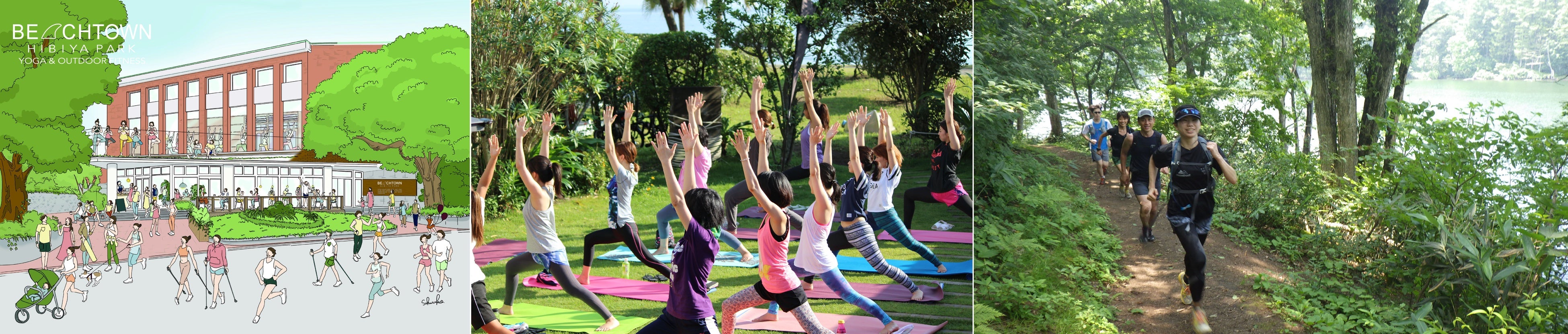 都会のオアシス!明治時代から続く東京の自然豊かな癒しの公園「日比谷公園」に、緑に囲まれたインドアヨガスタジオ・日比谷公園のパークヨガ、皇居ランニング、関東近郊の大自然で行うアウトドアフィットネスを融合した、人と人、人と自然をつなぐ、まったく新しいコミュニティ「BEACHTOWN日比谷公園」がオープン!仲間との自然調和のアクティブライフを通じて、いつまでも飽きずに、楽しく続けるヘルスケアサービスを展開します。
