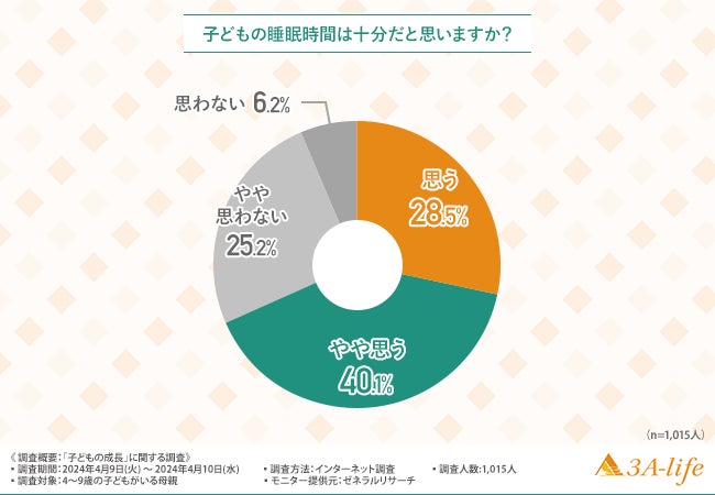 そこで今回、成長応援食品『せのびーる』(https://cp.3a-life.com/3alife_hp_cocoa)を販売するスリーエー・ライフ株式会社(https://www.3a-life.com/)は、4歳~9歳の子どもがいる母親を対象に「子どもの成長」に関する調査を実施しました。