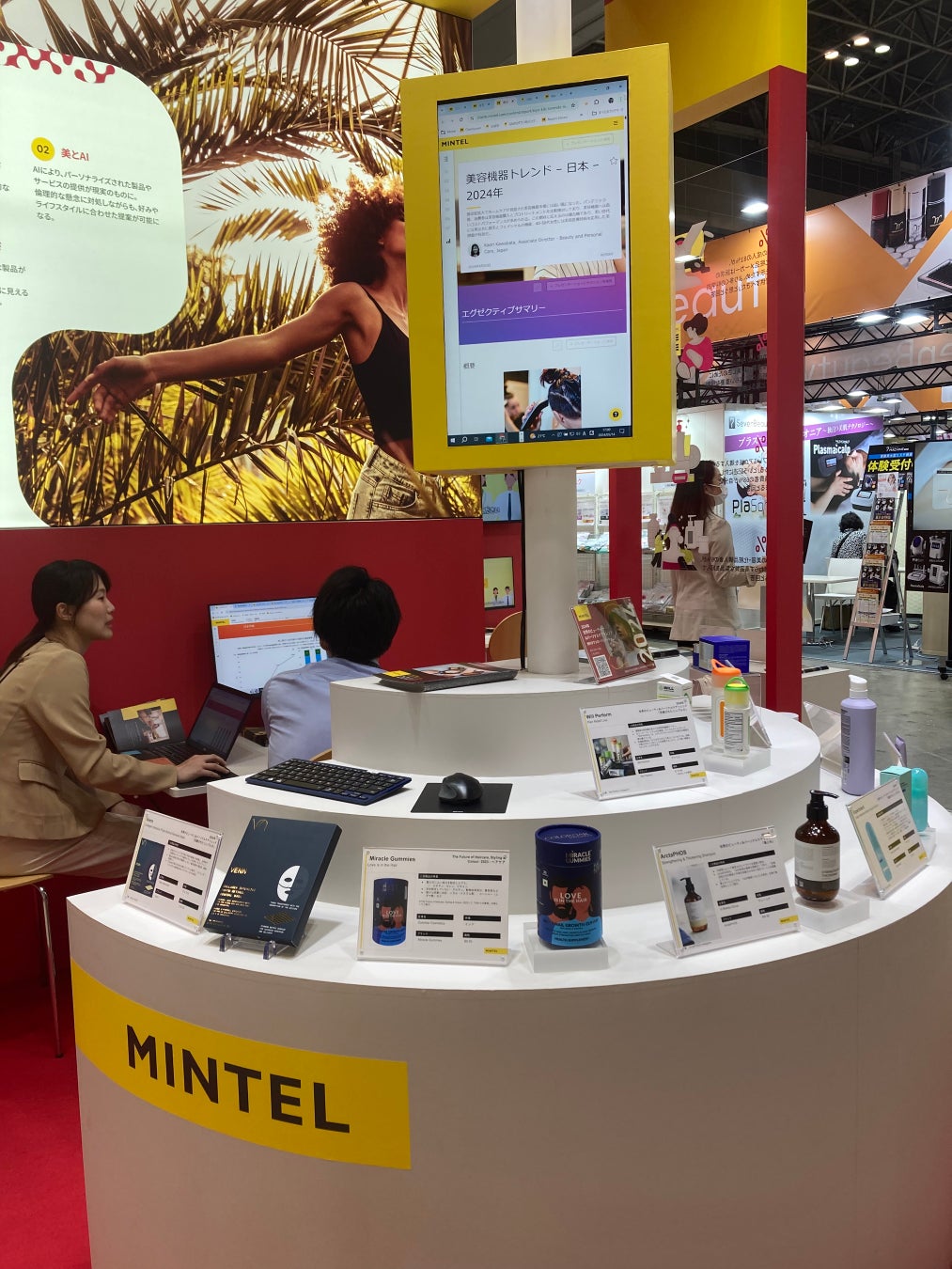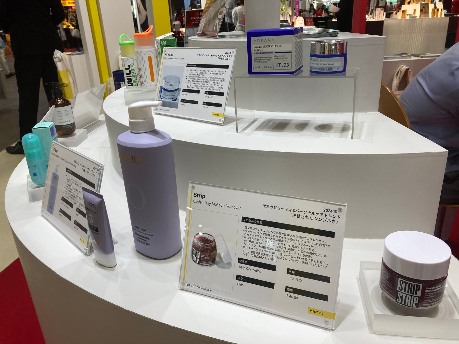 ブースでは、メイクアップリムーバー、スキンケア、ヘアケア製品など、ミンテルの「2024年:世界のビューティー&パーソナルケアトレンド」でご紹介した革新的な美容・化粧品を世界各国から取り寄せ、展示いたしました。