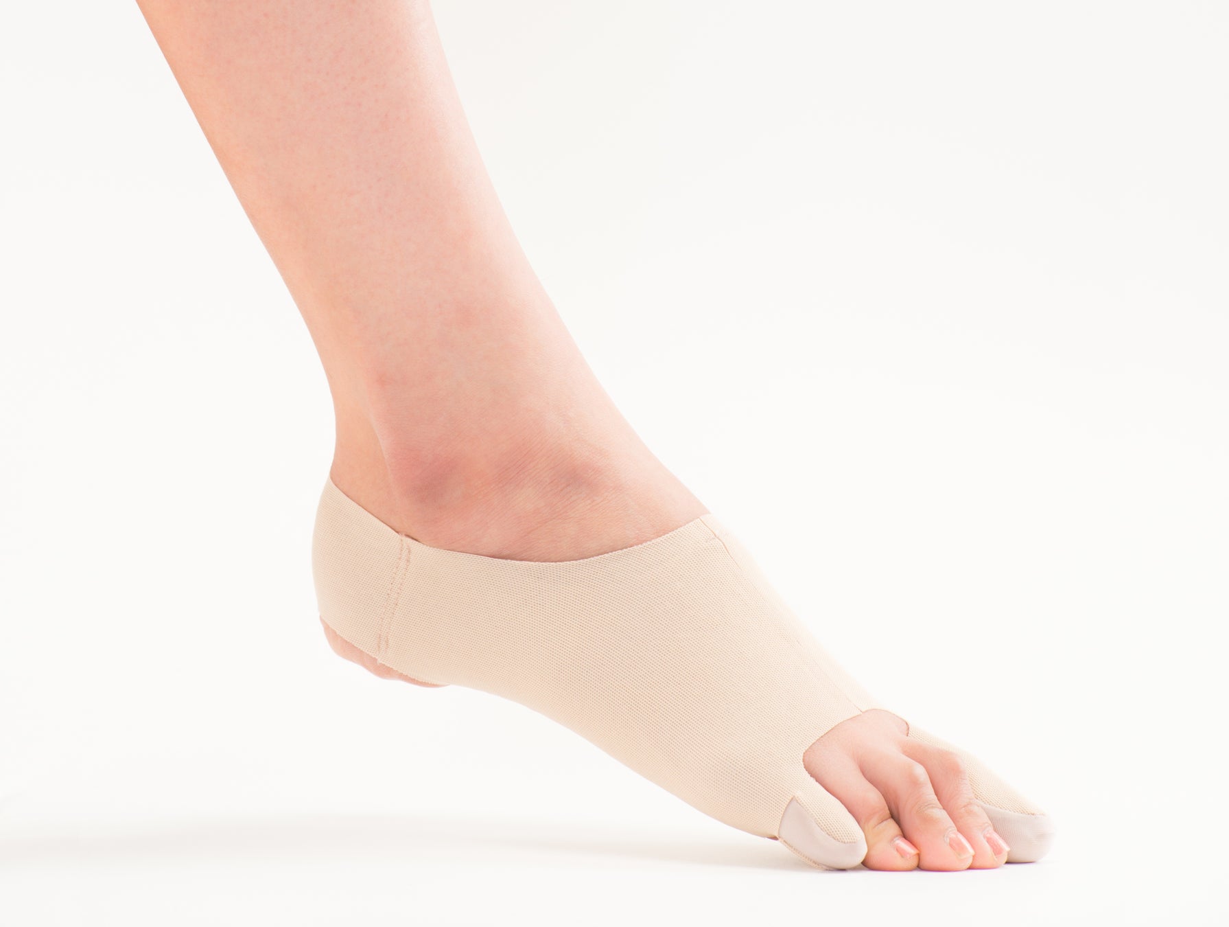 薄手の二層生地が親指と小指を開くようにテンションをかけ、外反・内反気味の指を正しい方向へ誘導させるサポーターです。指の開き・横アーチ・縦アーチの3つの機能で足底バランスをトータルサポートします。