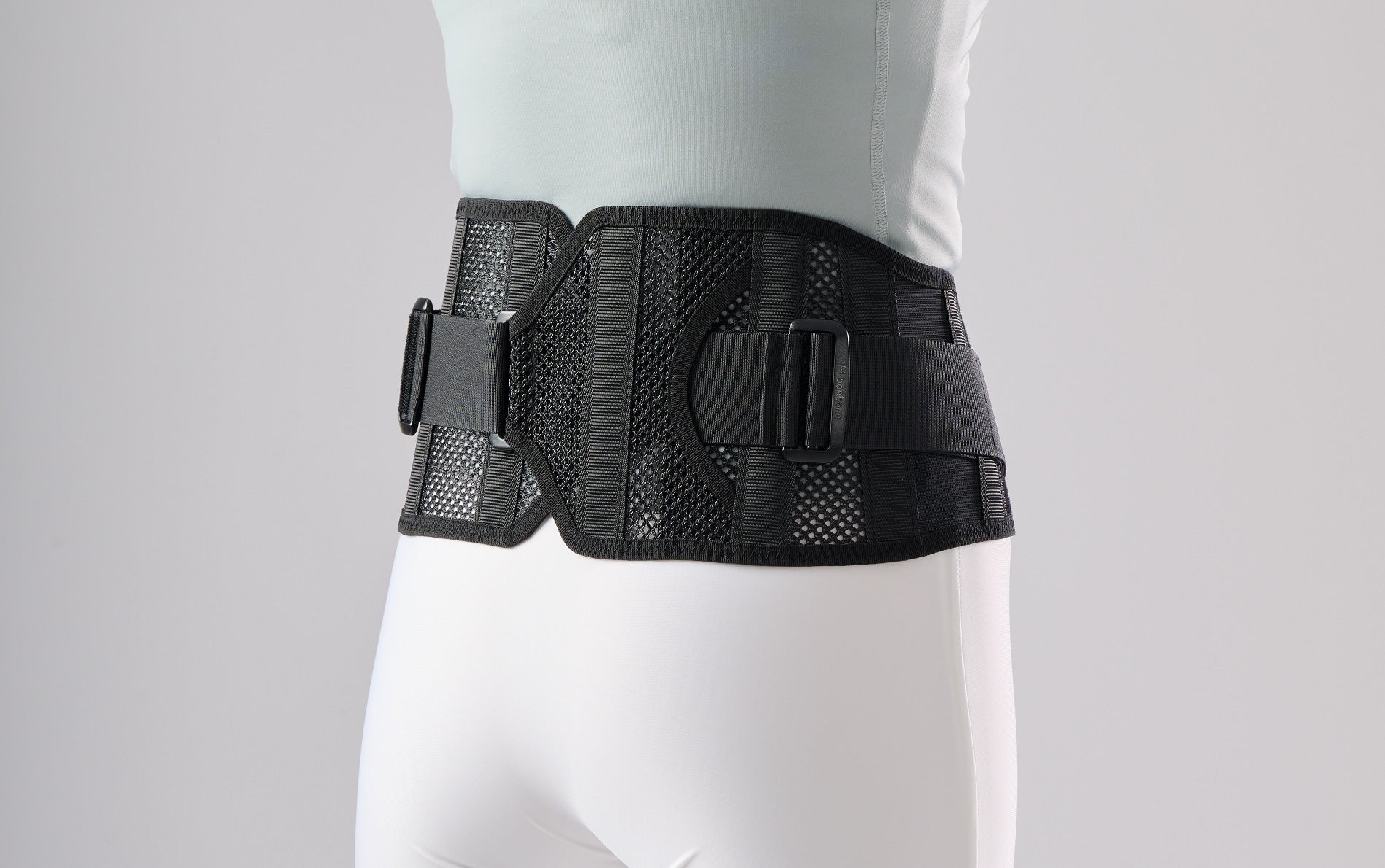 動きやすさとサポート力を兼ね備えたコルセットです。滑車の原理を応用した当社オリジナルの逆締め構造により、補助ベルトを軽く引っ張ることでググッと集中的に背部を締め込みます。また、前かがみの姿勢などでも腰に隙間ができにくい幅とサポート力、動きやすさのバランスにこだわって誕生した製品です。
