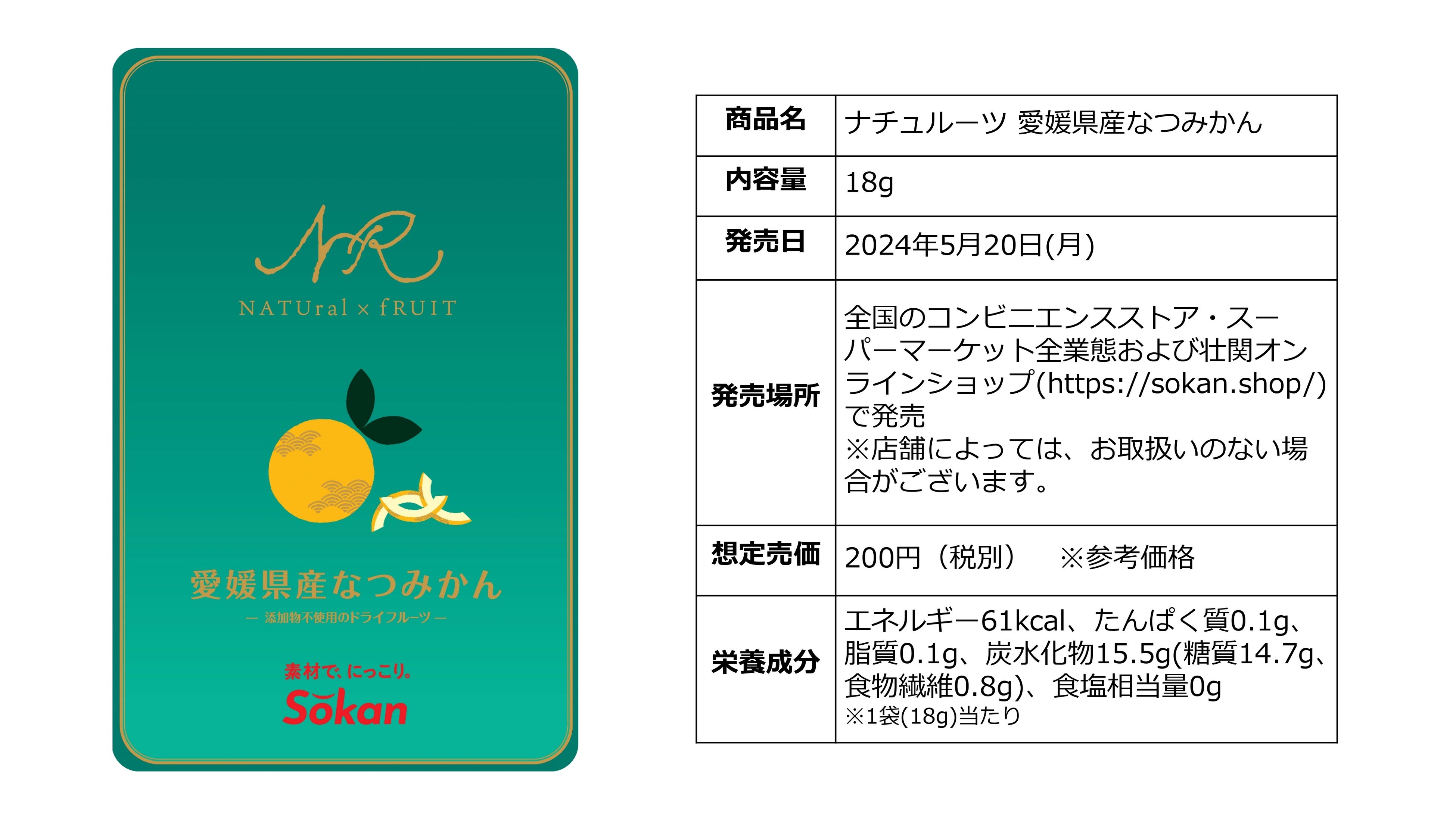 株式会社壮関(本社:栃木県矢板市 代表取締役社長:板山 健一)は、新商品『ナチュルーツ 愛媛県産なつみかん』を2024年5月20日(月)より全国のコンビニエンスストア・スーパーマーケット全業態および壮関オンラインショップ(https://sokan.shop/)で発売いたします。