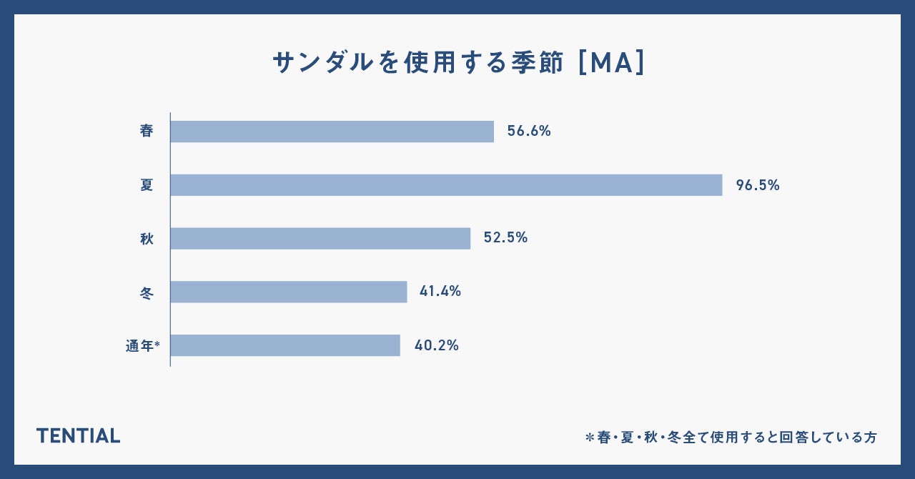 サンダルを日常的に使用する方が60%以上。通年使用が40%以上と主要な履物として使う傾向も。