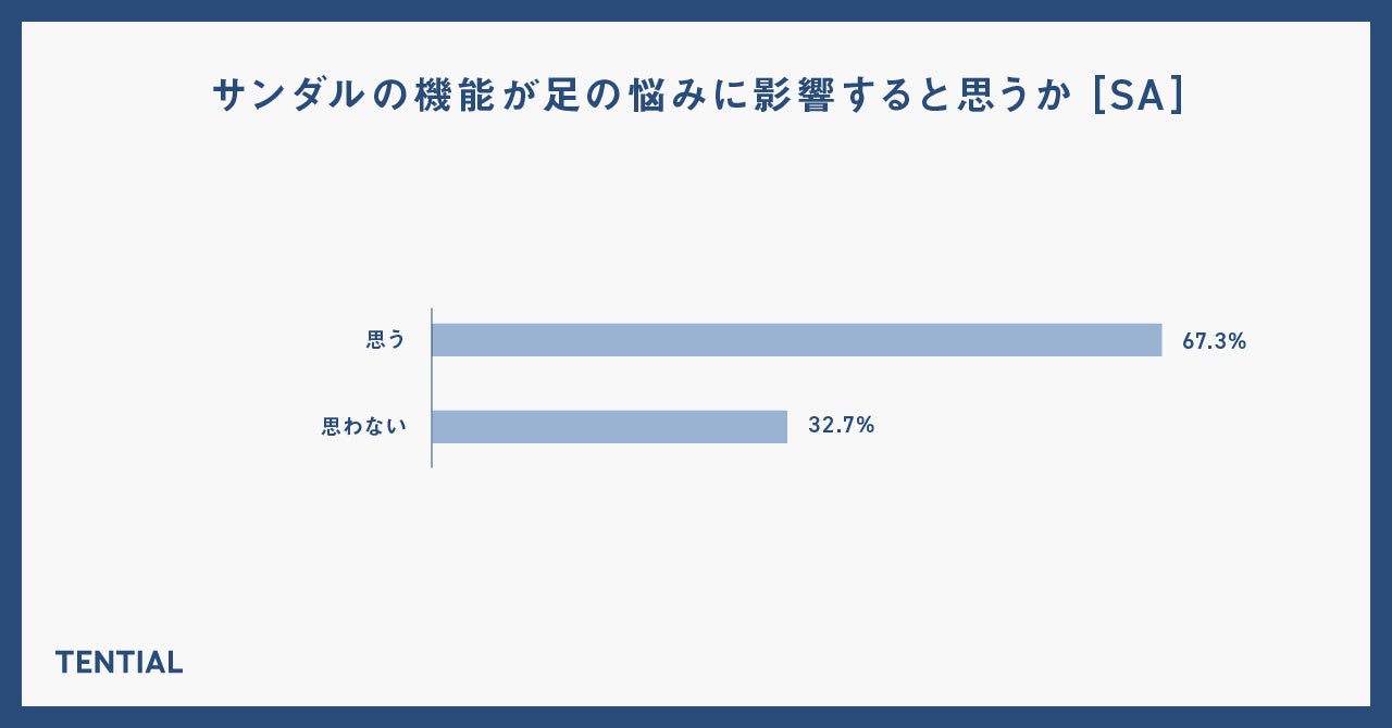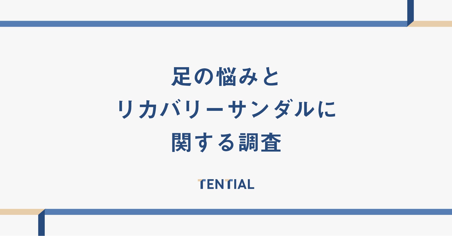 健康に前向きな社会の実現を目指し、コンディショニングブランドを運営する株式会社TENTIAL(所在地:東京都品川区、代表取締役CEO:中西裕太郎、以下「テンシャル」)は、日本全国の20~60代343人を対象に「足の悩みとリカバリーサンダルに関する調査」を実施いたしました。6割以上の方が足の悩みをもっている一方、半数近くの方が対策をしていないことが判明しました。リカバリーサンダル(機能性サンダル)についてはほとんど認知されておりませんが、体験いただいた方の多くが、「サンダルの機能が足の悩みの改善に影響する」「今後も使いたい」と実感し、足の悩みを解決するサンダルのニーズが明らかになりました。