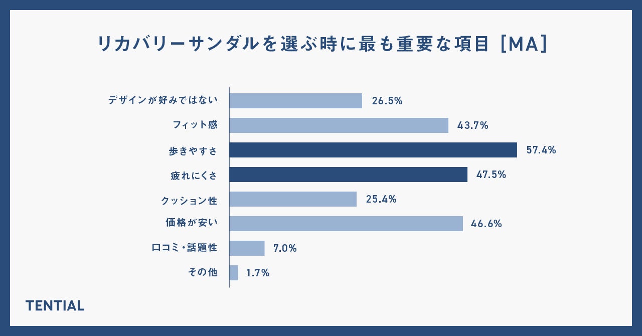 リカバリーサンダルを選ぶ時に重要なポイントは「歩きやすさ」「疲れにくさ」が上位。