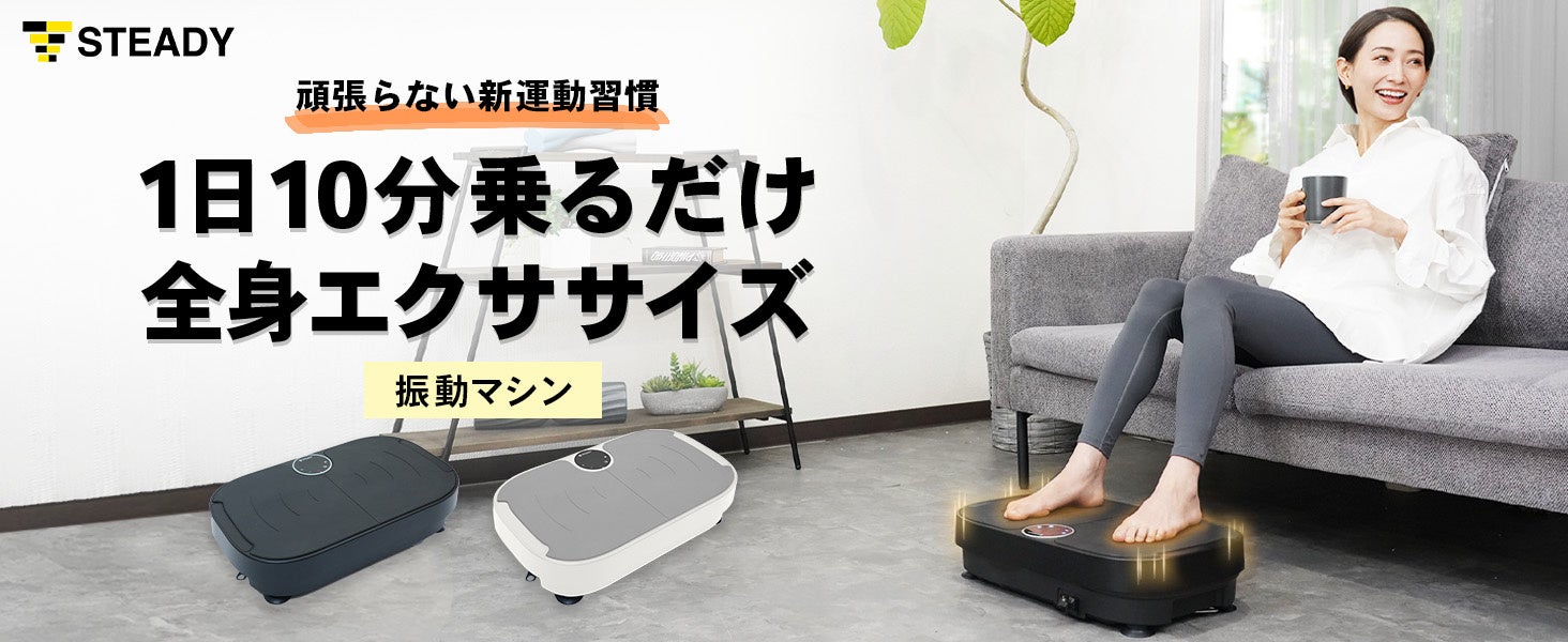2018年のブランド展開開始から、SNSやカスタマーサポートで既存製品に対するお客様の声を拾い上げ、日本人の体格や考え方、住環境、ライフスタイルに配慮したホームフィットネス / ストレッチ製品を提案し、日本においてトップクラスのEC販売実績を誇る ステディジャパン株式会社(本社:東京都新宿区、代表取締役CEO:森由樹)は、約10分間上に乗るだけでエクササイズが可能な「STEADY 振動マシン」を2024年5月16日(木)よりSTEADY公式サイト、総合オンラインストアAmazon.co.jp、楽天市場などにて販売開始します。