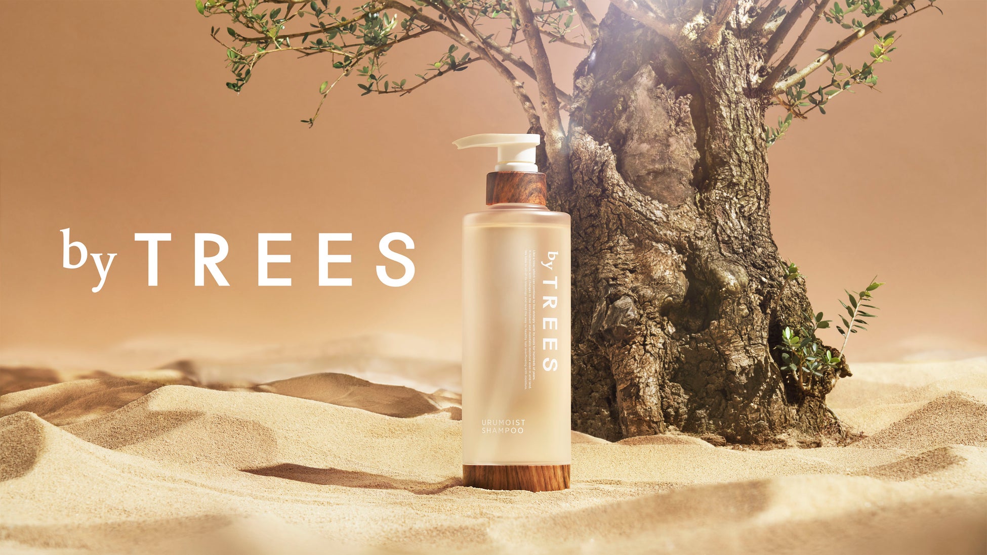 樹木が持つ貯水力と補修力に着目した新ヘアケアシリーズ「byTREES」は、環境の変化に調和し、乾燥した大地でも潤いを保ちながら何百年も根を張り、強く生き続ける樹木の生命力に発想を得たインナーピースヘアケアブランド。樹木のチカラと、植物×サイエンスをコンセプトにした全く新しい発想のヘアケアシリーズです。樹木の恵みを余すことなく取入れうるおいのあるうるとぅる貯水*5髪へ。