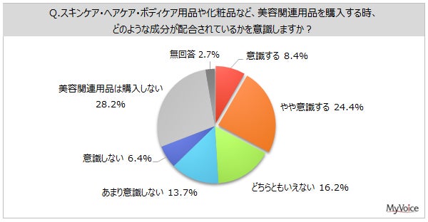 美容関連用品購入時に配合成分を意識する層は、「意識する」「やや意識する」を合わせて3割強です。
