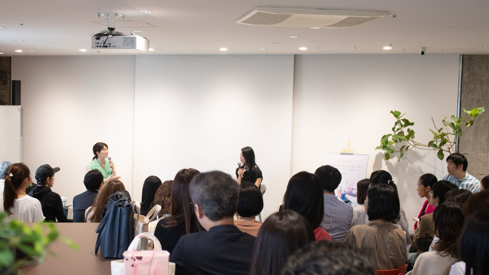 出版記念トークショーは2部構成で、第1部、第2部ともに、書籍に掲載されているメーカーの方や、土井が愛用しているサロンの方、ヴィーガンやオーガニックをテーマに活動をされている方など、合計で70名以上の方にご参加いただきました。