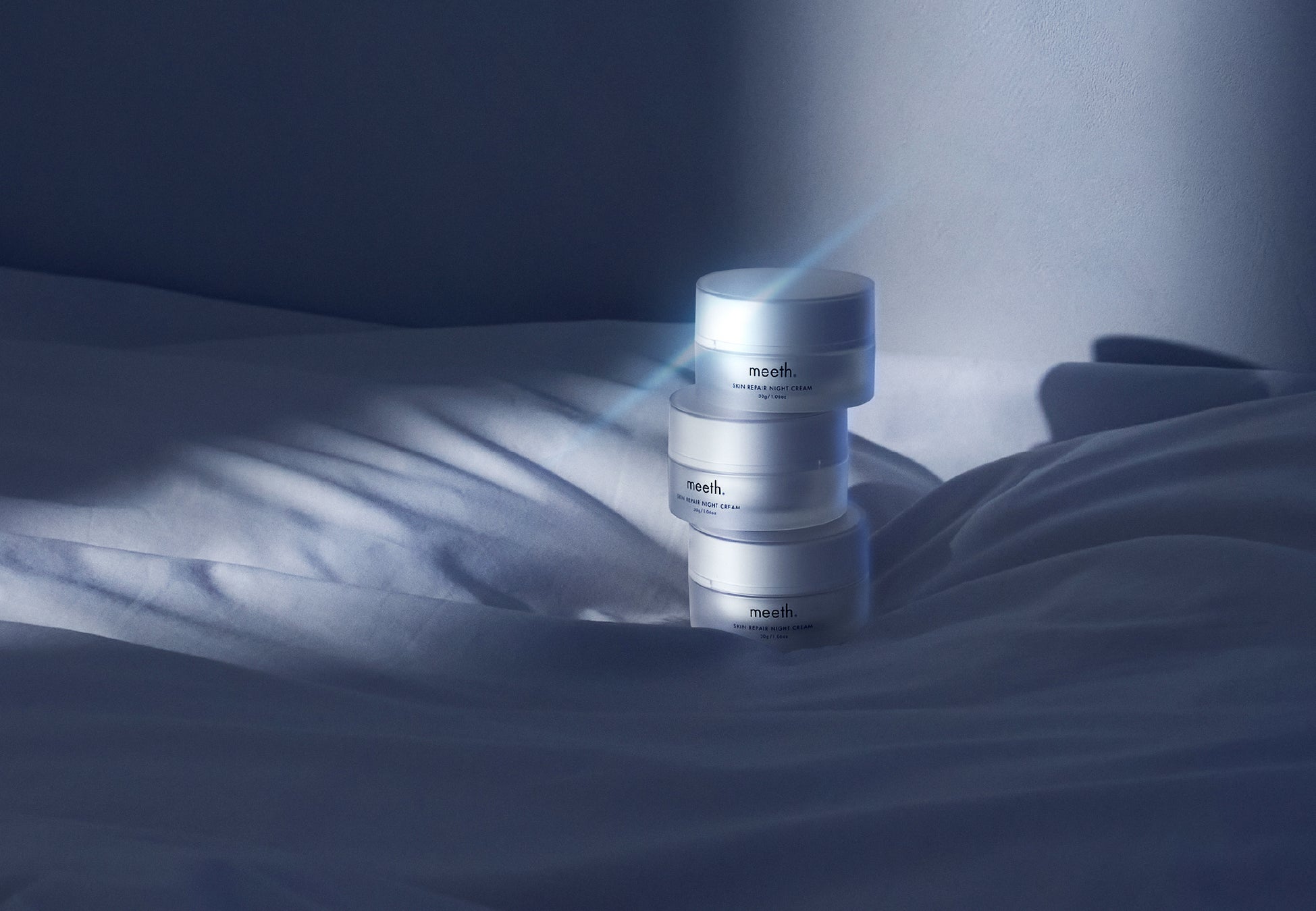 “ブルーライトを有効利用する” 夜用クリームがリニューアル!meeth POP-UP STORE in NAGOYAでは、7月1日のリニューアル発売に先駆けて、スキンリペア ナイトクリームの先行販売を行います。多くの方にご愛用いただいていたスキンリペア ナイトクリームですが、ときに、夏場などは少しテクチャーが重く感じるというお声を頂戴することがありました。meethはお客様との距離感が近いブランドです。いただいたリクエストを商品開発に反映することをこれまでも大切にしてきました。
