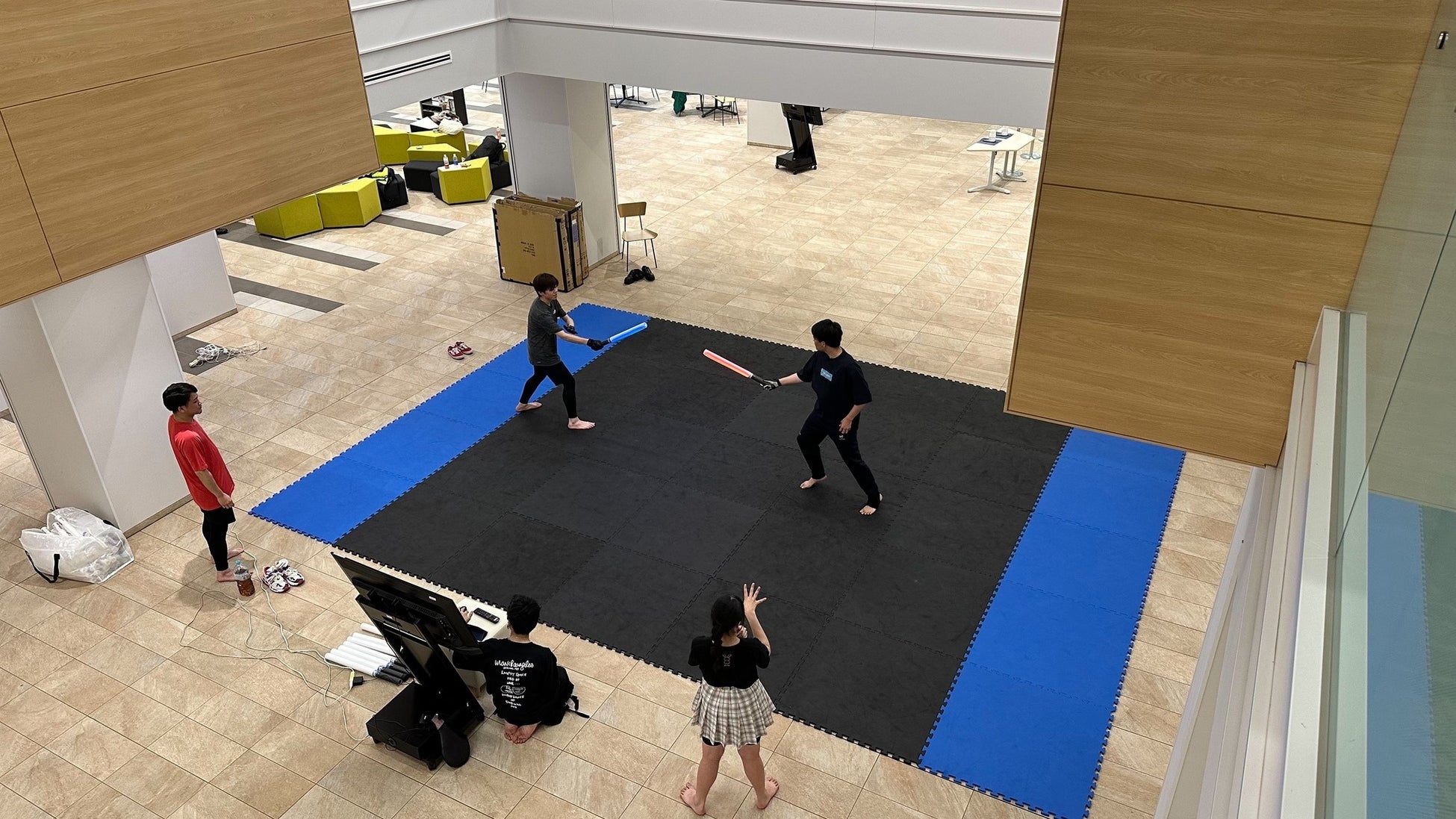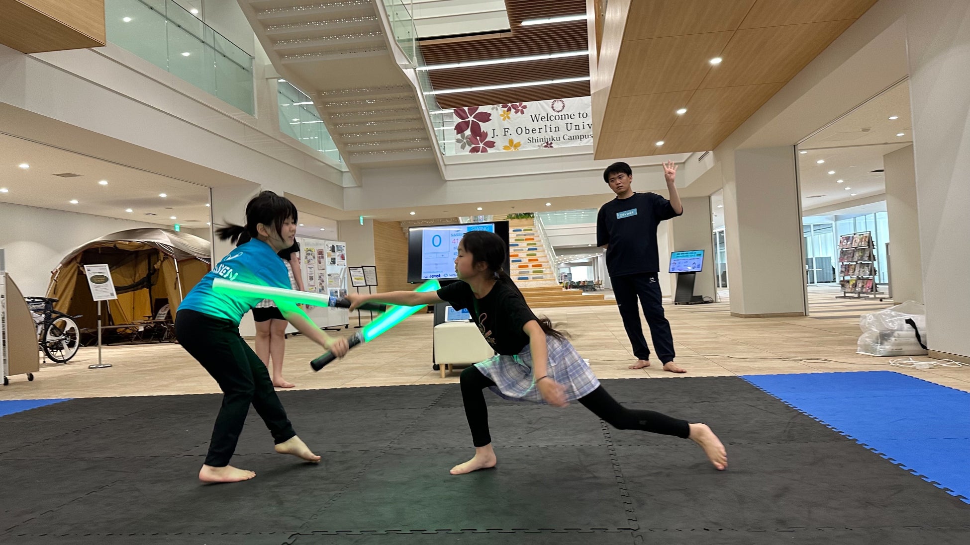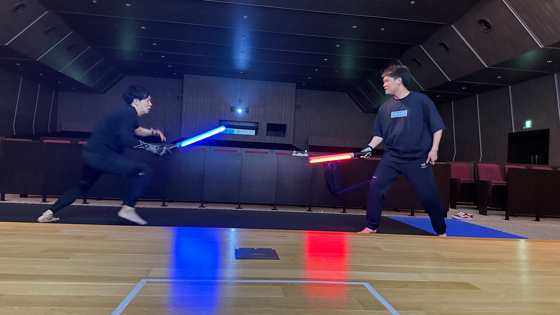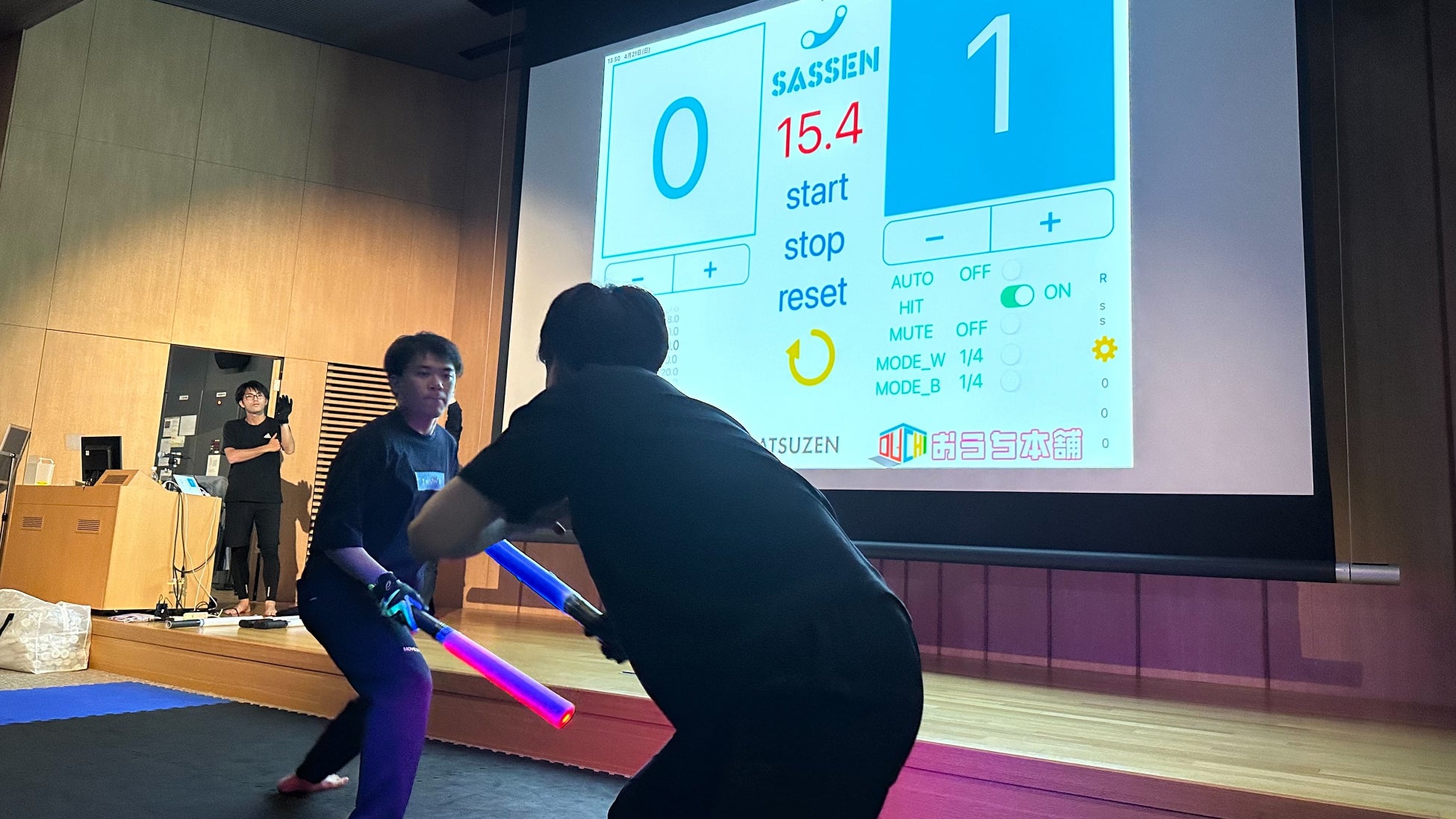次世代のデジタルチャンバラのようなスポーツで、センサー内蔵のLED刀は、Bluetoothで専用アプリと連動し、どちらが先に当てたのかを正確に機械判定します。スマートフォン一台あれば、正確な判定が可能です。