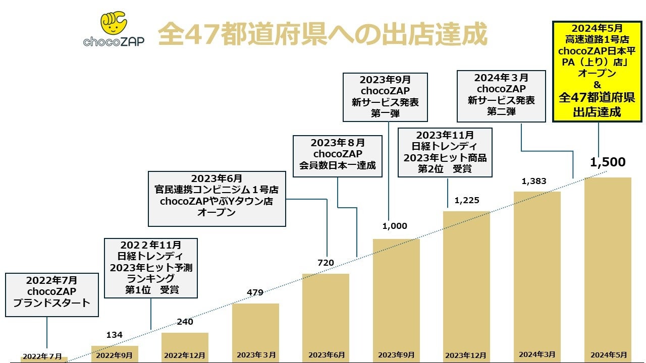2022年7月にchocoZAPブランドをスタートしてから、全国の多くの方々にご利用いただき、約1年10カ月で47都道府県への出店を達成することができました。