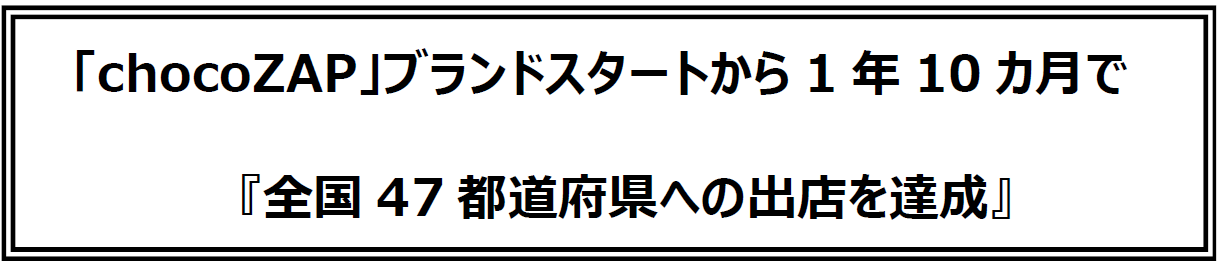 2022年7月にchocoZAPブランドをスタートしてから、全国の多くの方々にご利用いただき、約1年10カ月で47都道府県への出店を達成することができました。