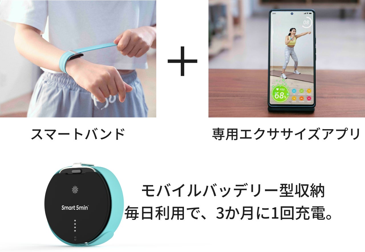 たった5分で、自宅で器具や特別な場所を必要とせず、気が向いた時にスマートバンドをパチンとつけてエクササイズを始められます。