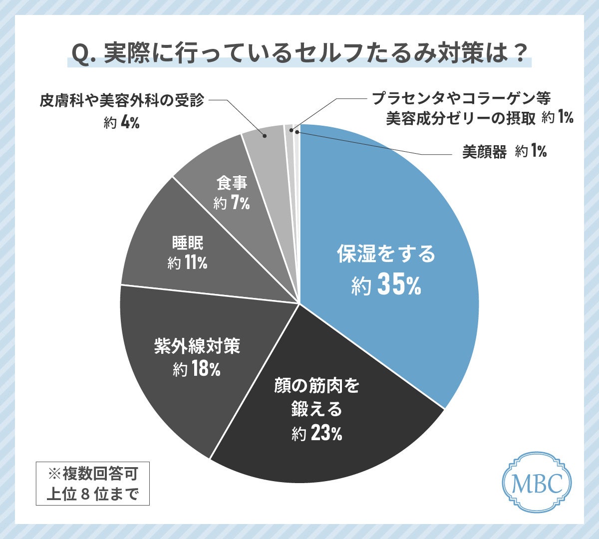 「あなたが実際に行っているセルフたるみ対策はどれですか?(複数選択可)」とアンケート調査した結果、