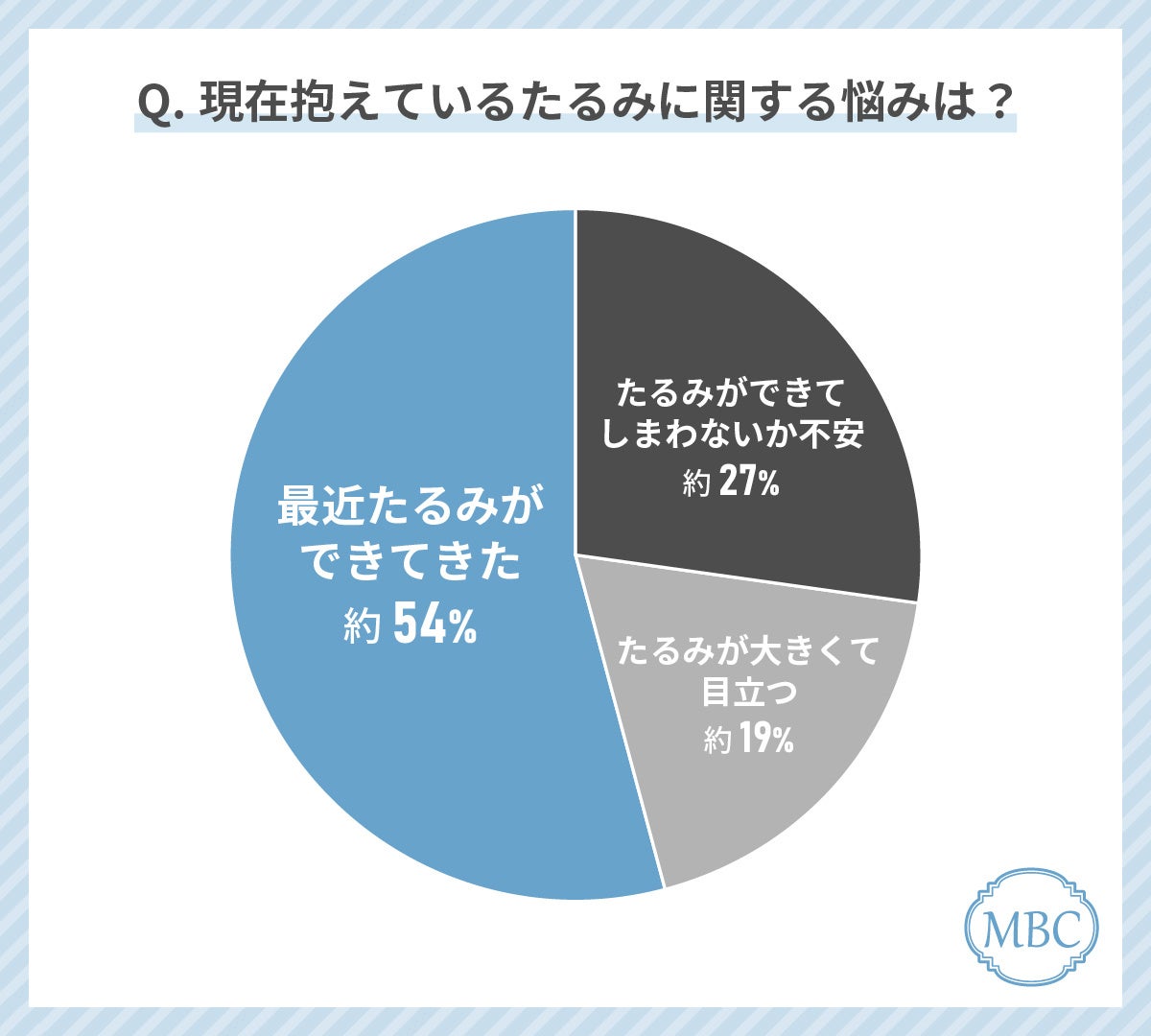 「現在抱えているお肌のたるみに関する悩みはどのようなものですか?最も近いものを選んでください。」とアンケート調査した結果、