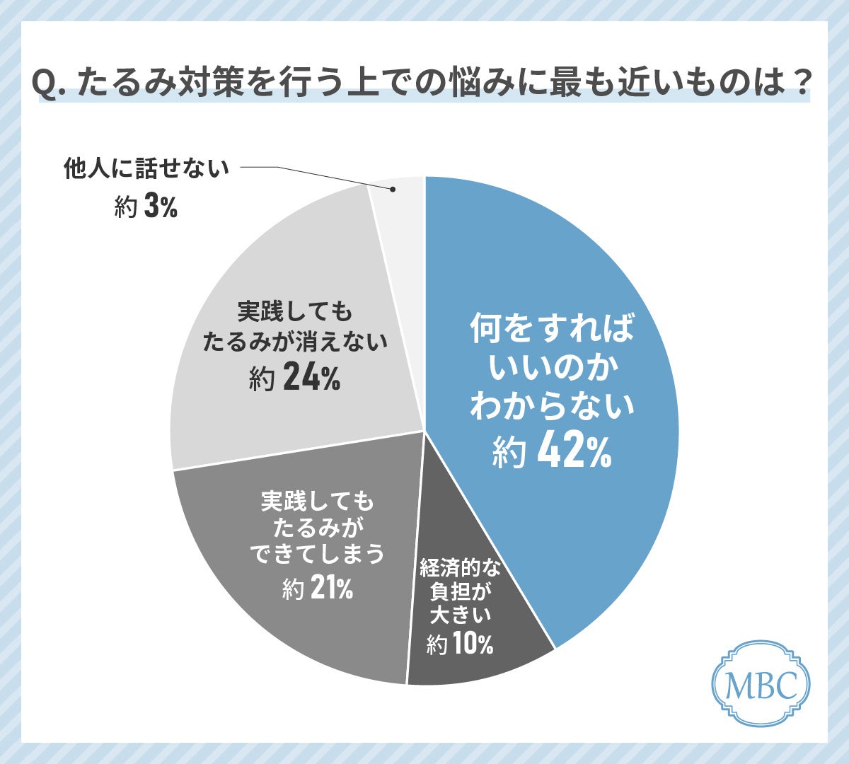 「あなたがたるみ対策を行う上での悩みに最も近いものはどれですか?」とアンケート調査した結果、
