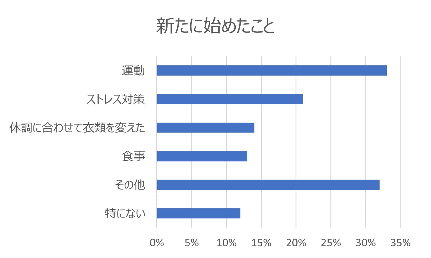 終了時にパフォーマンスが改善した人の中でも、運動が33%、ストレス対策が21%、下着で体を温めるなどの対策が14%で、全体として72%が自身で新たに対策を始めるなど行動変容がみられました。