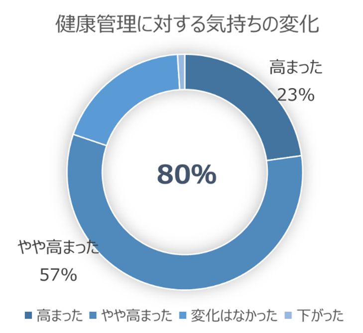 女性の健康セミナーやセルフケア方法の情報提供により、全体の80%が「日々の健康管理に対する気持ちが高まった」と回答。