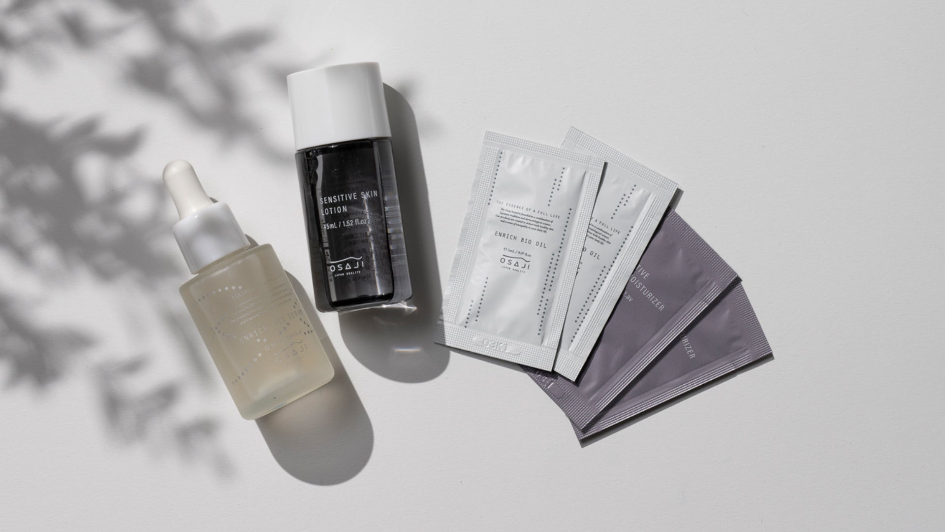 肌が敏感になりやすい時期にもお使いいただける「センシティブ スキン ローション」「センシティブ スキン モイスチャライザー」をセットしたOSAJIのスキンケアを初めてお使いいただく方におすすめの特別なセットです。