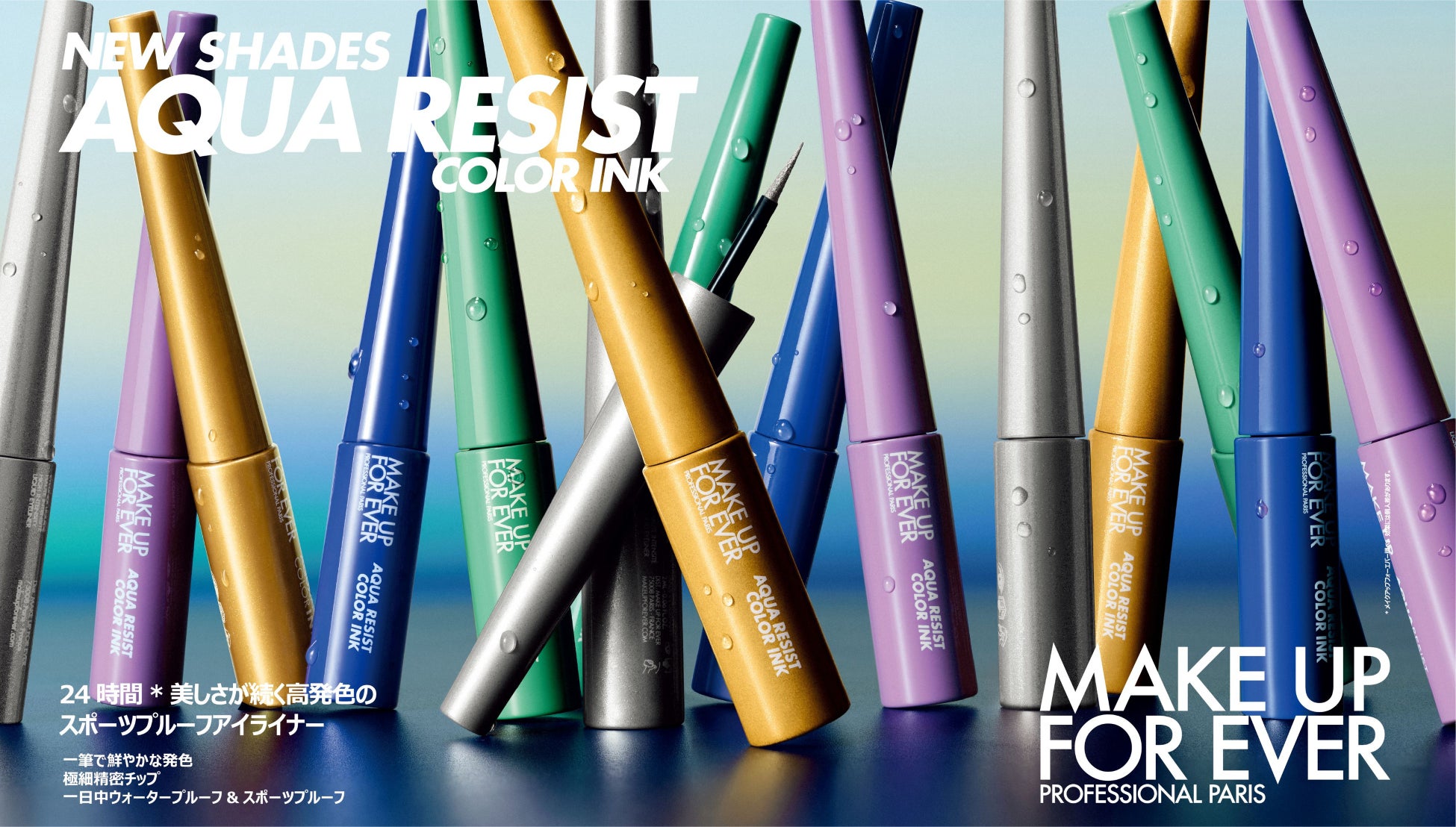 メイクアップフォーエバー創業の地、フランス・パリでのオリンピック開催を祝し、アクアレジスト カラーインクから、オリンピックのシンボルマークからインスパイアされた3種類のマットカラーと栄光のメダルを想起させるゴールドとシルバーのメタリックカラーの計5⾊の新色を2024年6月5日(水)に追加発売いたします。
