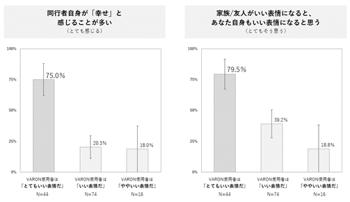 また、「写真館イベント」において「VARON オールインワンセラム」使用者を対象に行った調査※12の結果、使用者が、そのご家族・ご友人から見て「いい表情で毎日を過ごせている」と強く思えると、ご家族・ご友人自身が「幸せと感じること」が多く、「わたし(使用者)もいい表情になる」と感じることもわかりました。「VARON オールインワンセラム」をお使いいただく大人男性がいい表情になることで、その周囲の方までも幸せを感じ、いい表情になるというインサイトに基づき、2024年3月には夫がスキンケアをすることにより夫婦2人ともが人生に対してポジティブになる姿を描いたCMも展開しました。