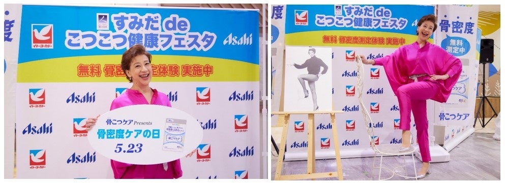 「すみだdeこつこつ健康フェスタ」のお披露目イベントに、カルピス健康通販『骨こつケア』のブランドアンバサダーである前田美波里さんが登場。昨年3月に前田美波里さんと発表した5月23日 “骨密度ケアの日”について紹介。骨密度の重要性をいま一度考えていただくきっかけとなればといった想いで、記念日制定に関する想いを語りました。