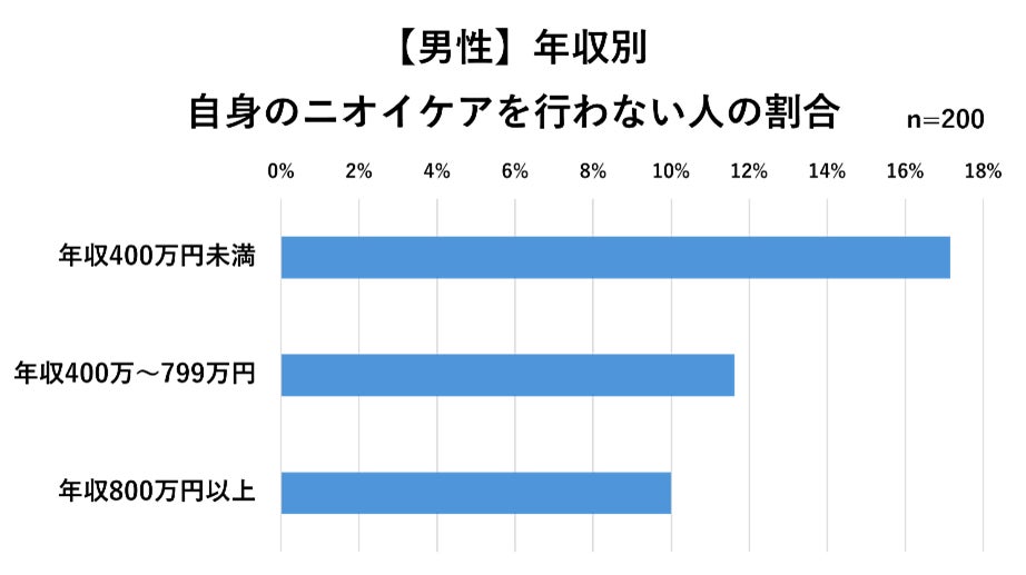 ② 男性のニオイケア実施率は86%。年収800万以上の人は「何もしていない」がたった1割