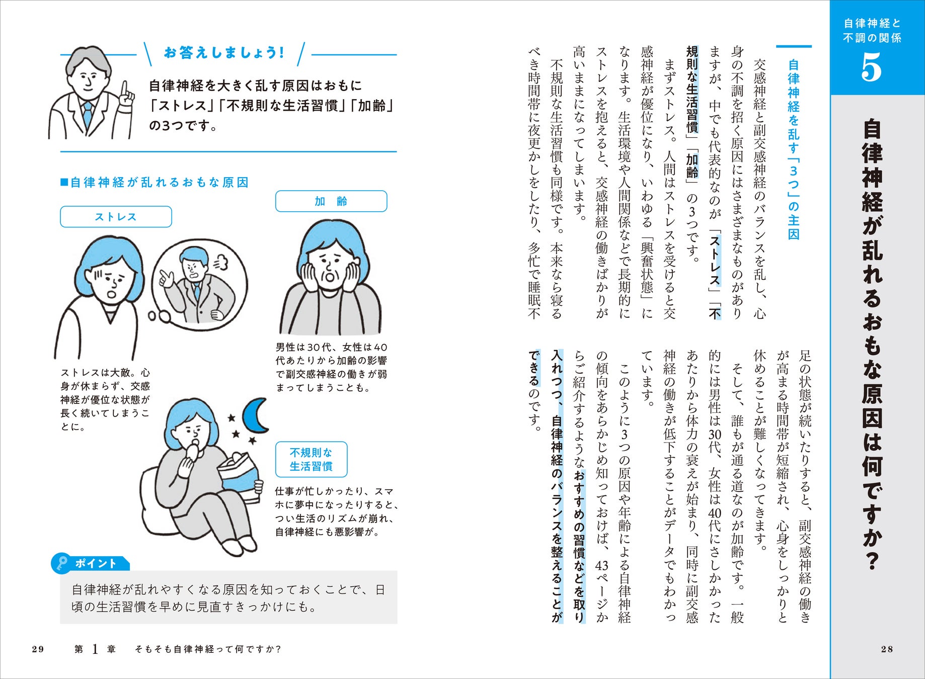 自律神経とはどんなものかといった基礎知識から、不調への対処法、著者がすすめる生活習慣まで、自律神経について幅広く学べるトピックが満載です。