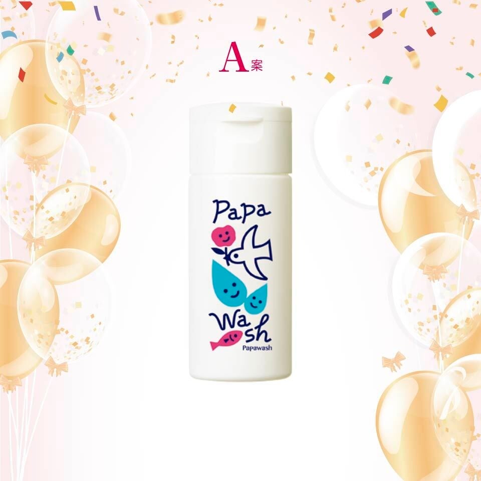 ドットの水色はパパウォッシュの洗い上がりのさっぱり感を、オレンジは洗いあがりの肌のうるおい感を表しています。