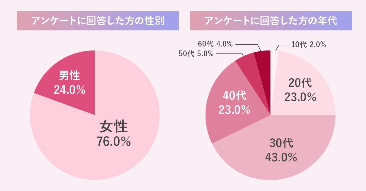今回の「花粉症で起きる肌トラブル調査」に回答した100人のうち76%の人が女性でした。