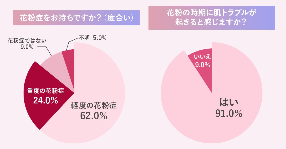 【花粉症をお持ちですか?また、花粉の時期に肌トラブルが起きると感じますか?】