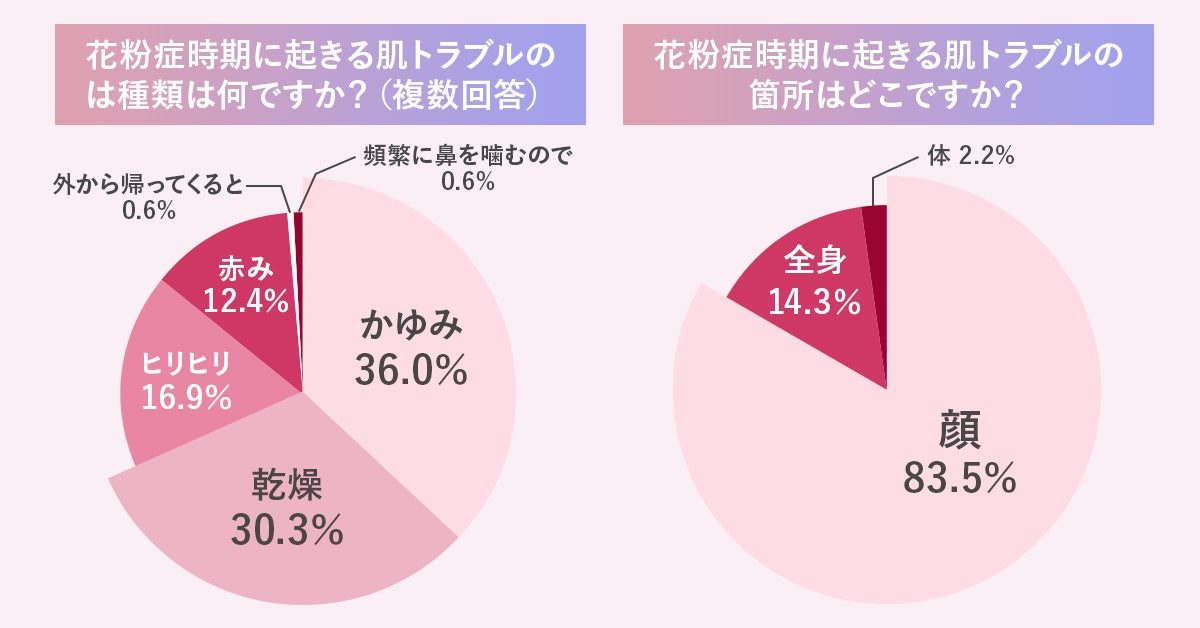 【花粉症時期に起きる肌トラブルは何ですか?また、どこの箇所に肌トラブルが発生しますか?】