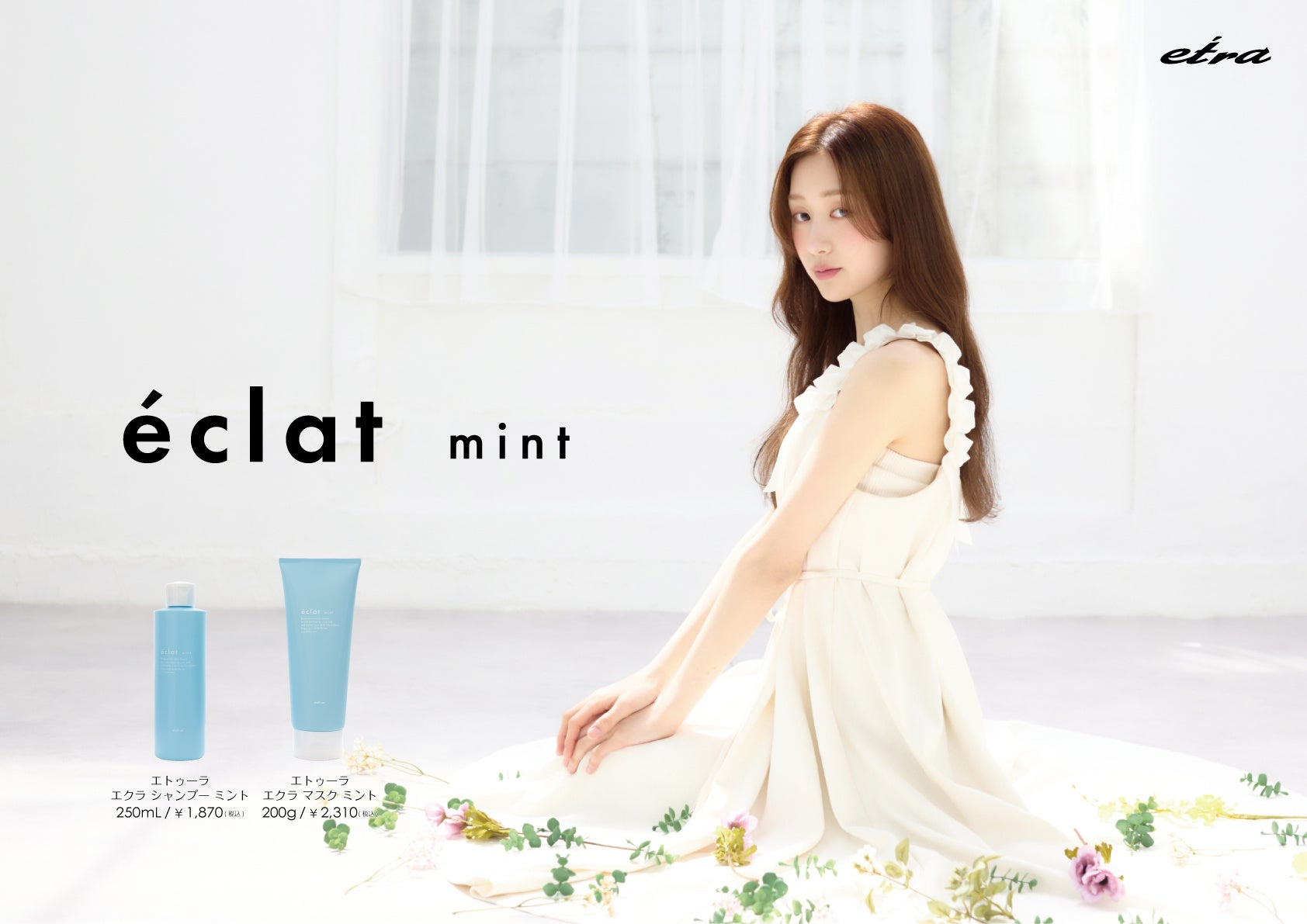 「エクラ ミント」は、『夏の髪と頭皮にリフレッシュタイムを』というコンセプトでつくられました。名称はフランス語で「輝き」という意味の「éclat」と、爽快感を連想させるペパーミント(配合成分のひとつであるセイヨウハッカ葉エキス)を掛け合わせており、「サロン帰りの綺麗な状態の髪をできるだけ楽しんでいただくことで、お客様の毎日が輝きで満ち溢れていますように。」との想いが込められております。