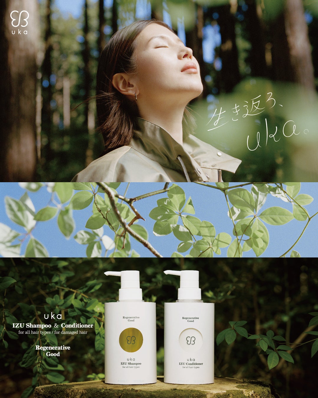 この度、トータルビューティーカンパニーuka(@instauka,@ukacojp)は7月17日(水)にRegenerative Good Seriesよりuka IZU Shampoo / Conditionerを発売します。