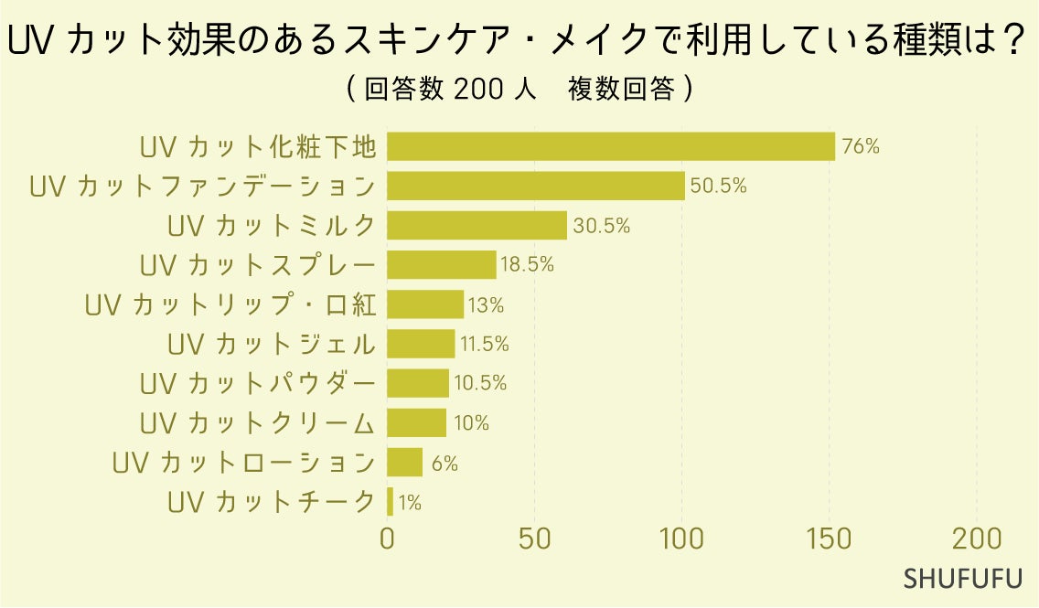 UVカット効果のあるスキンケア・メイクで利用している種類は?(複数回答)