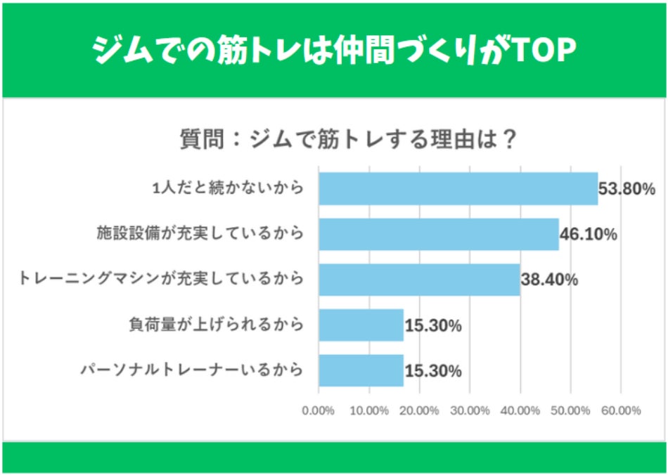 今回の調査結果では、ジムに通う方は「仲間を求めている」ということがわかりました。
