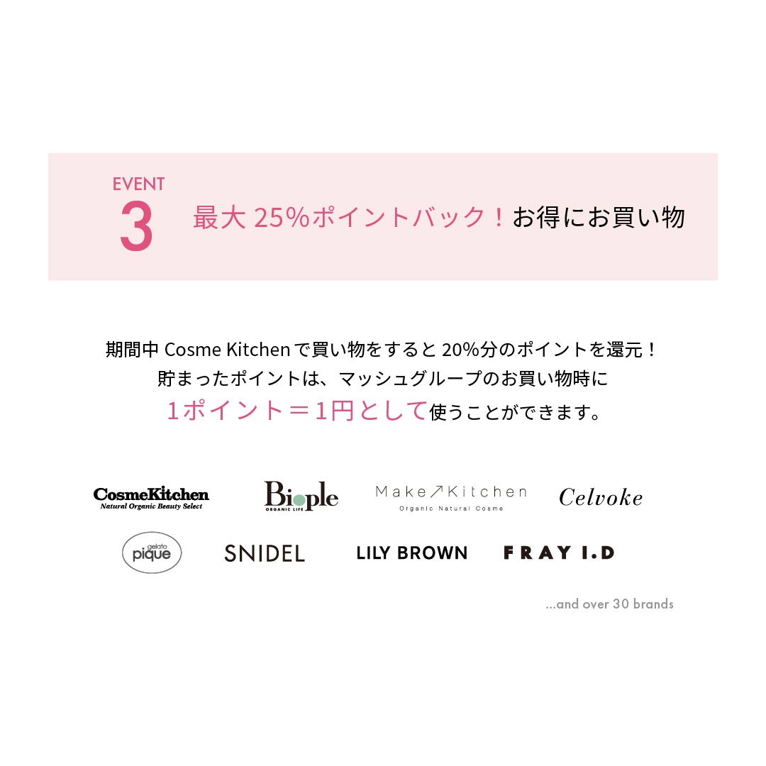 期間中、Cosme Kitchen WEB STOREでお買い物いただくと、対象商品のご購入で最大25%分のMA CARD FOR GO GREENポイントを還元!