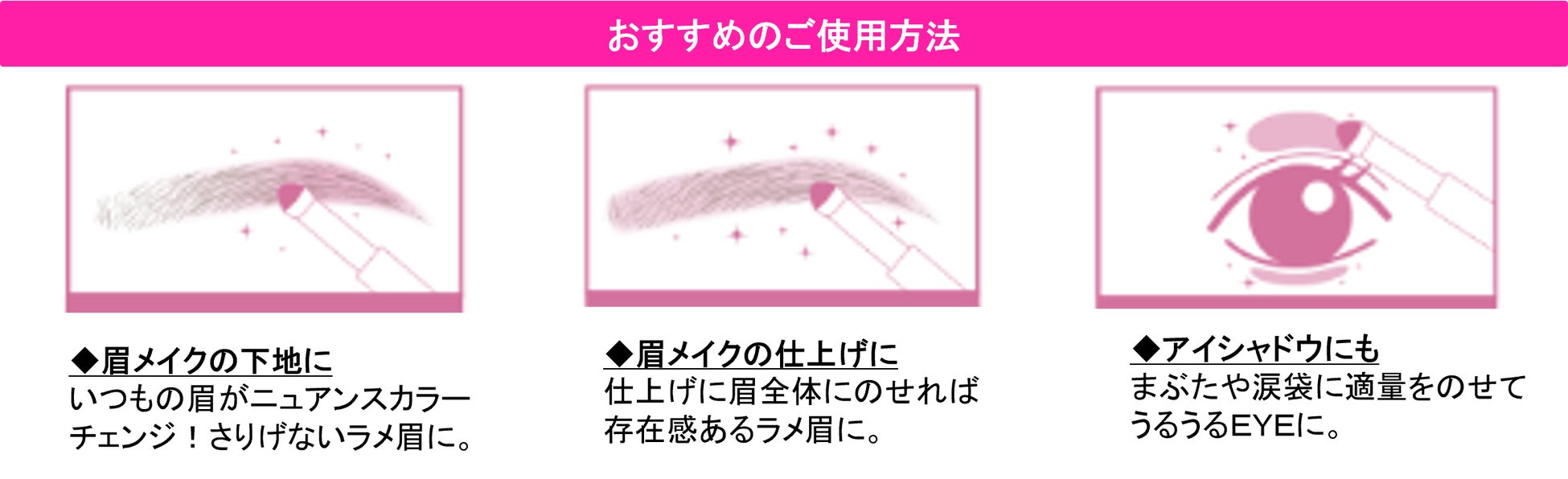 いつものメイクにムードを足せる絶妙なニュアンスカラーが眉に抜け感を与え、星のような透明感のある星屑パウダーでアイゾーンに立体感を演出します。