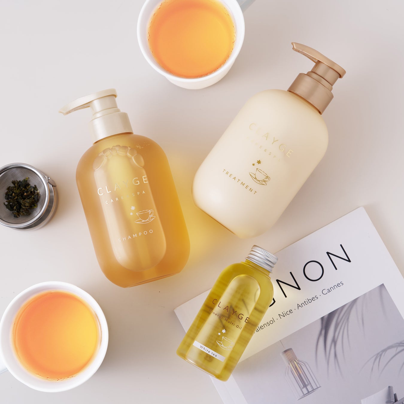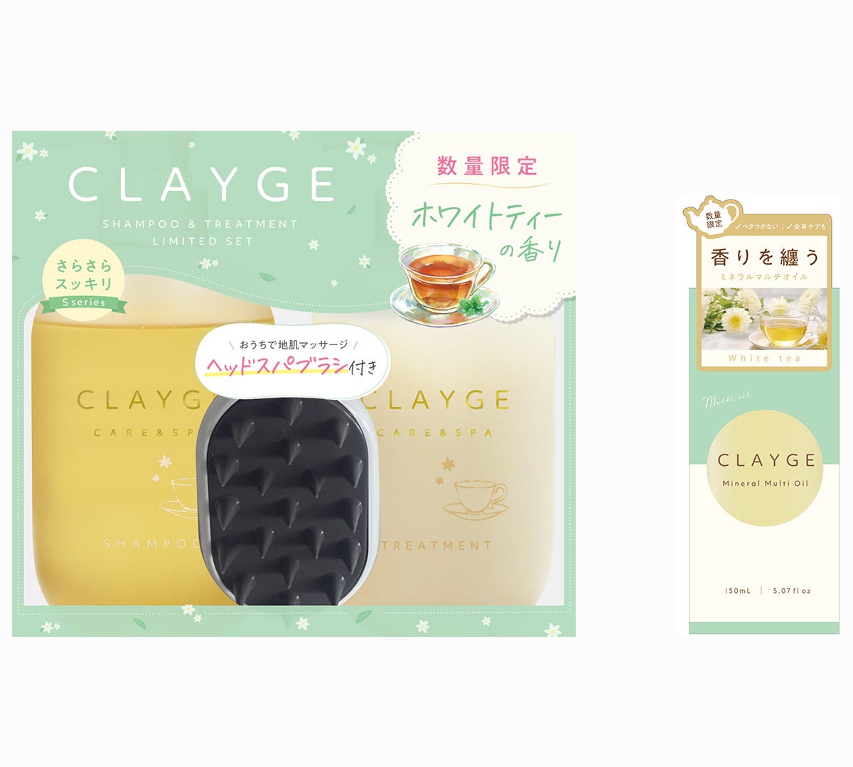 ミネラルクレイ*¹により地肌の汚れや皮脂を吸着除去し、地肌ケアをしながらうるおいを与えてさらっとなめらかな指通りへ導くSシリーズの仕上がりはそのままに、ホワイトティーの香りが登場。