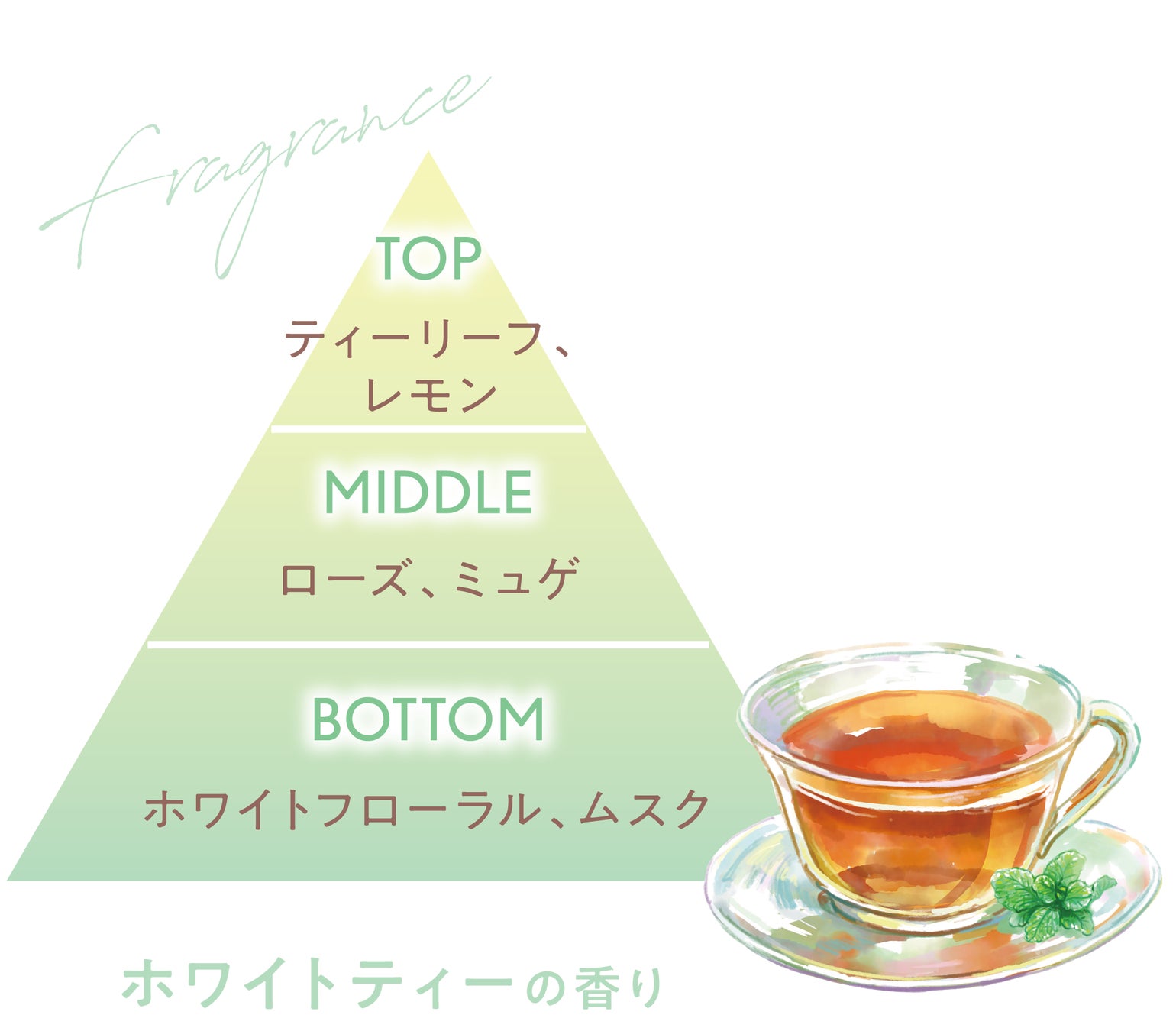 すっきり爽やかで気分もほっと落ち着く「ホワイトティーの香り」。