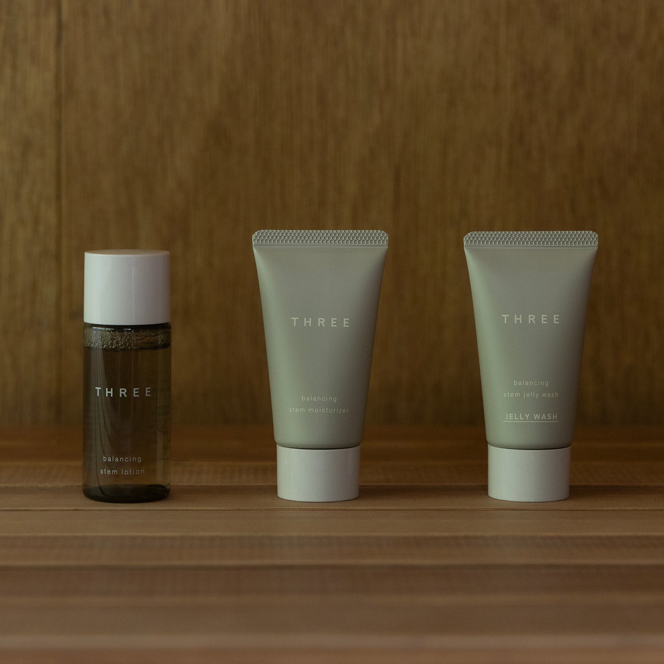 3は、「創造」を象徴する数。THREEは、相反する「2つの価値」を交差させ、「第3の価値」を生み出すブランドです。精油をはじめとする植物の恵みを用いて、多機能にアプローチするホリスティックケア。モードなインスピレーションを、一人ひとりの表情へ調和させるメイクアップ。そして、日常に心地よさと洗練をもたらすライフスタイルの提案。自分らしいバランスを見つけられる心地よさを、「心・からだ・肌」のすべてに。