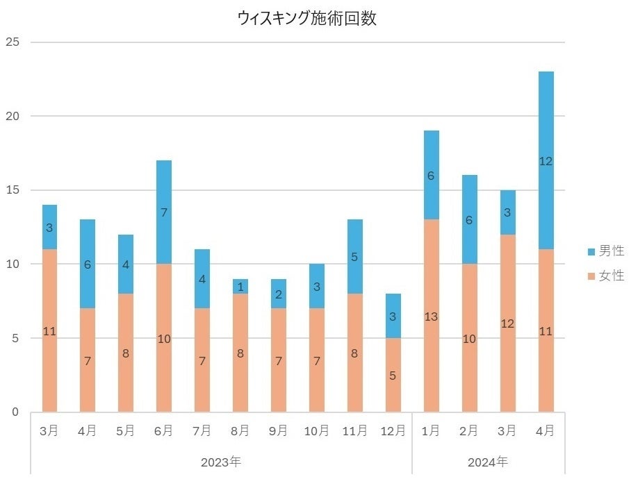 ウィスキングの施術状況(2023年3月から2024年4月)