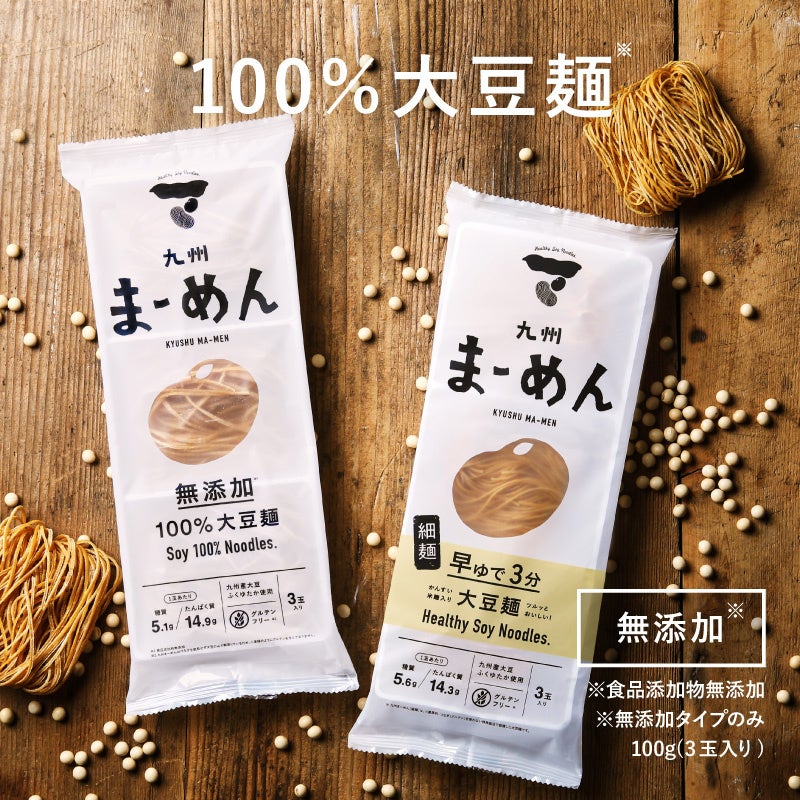 九州まーめんは、九州産大豆を100%使用した大豆麺です。