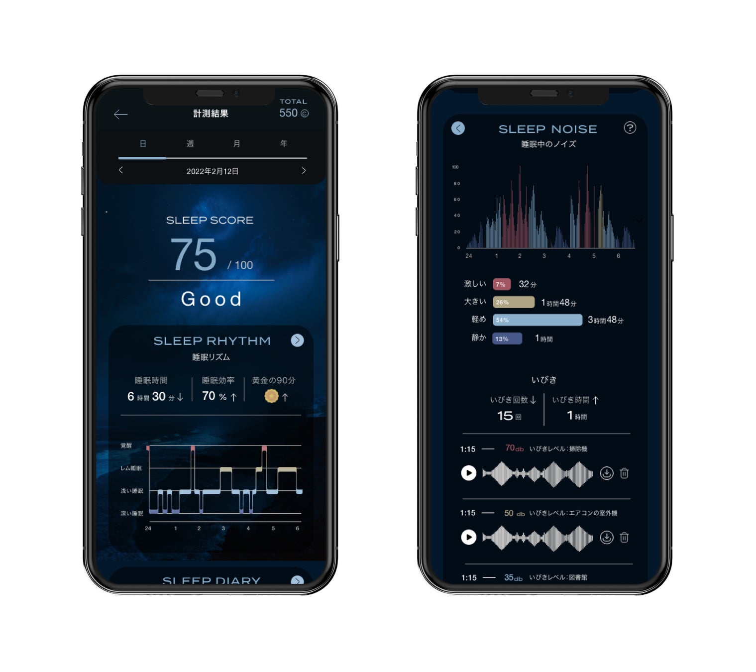 睡眠研究により蓄積されたデータを元に開発した独自の計測アルゴリズムを搭載した、睡眠を価値にする計測アプリケーション。人の動きに合わせたよりパーソナルな分析が可能。睡眠習慣の改善から、眠りのスコアがコインに変わる好循環サイクルを提案することで睡眠の質向上をサポートします。